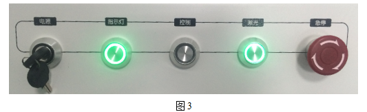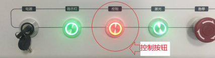 2)“電源”鑰匙開關(guān)向右擰,接通控制系統(tǒng)電源,綠色指示燈亮;